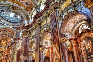 Fast forwarding to the 17th century, elements of Baroque architecture took the European continent by storm, and can still be seen to this day. The architectural style included massive halls, decorated with a variety of colors, and painted ceilings. It aimed to inspire and amaze all who stepped foot in these historical monuments, instilling emotions of divinity and God-like influence. The Baroque style of architecture was introduced by the Catholic Church as a response to the reformation period and the Protestant church, to instill Christianity as the dominant religion and strengthen its numbers.