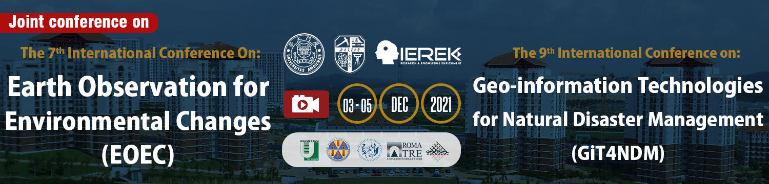 The 4th edition of the International Conference on “Future Smart Cities”, the 4th edition of the International Conference Resilient and Responsible Architecture and Urbanism”, and the 7th edition “Earth Observation for Environmental Changes” & 9th edition “Geo-information Technologies for Natural Disaster Management” was held in collaboration with Xiamen University Malaysia, and took place virtually from the 3rd to the 5th of December 2021, due to the travel restrictions caused by the pandemic.