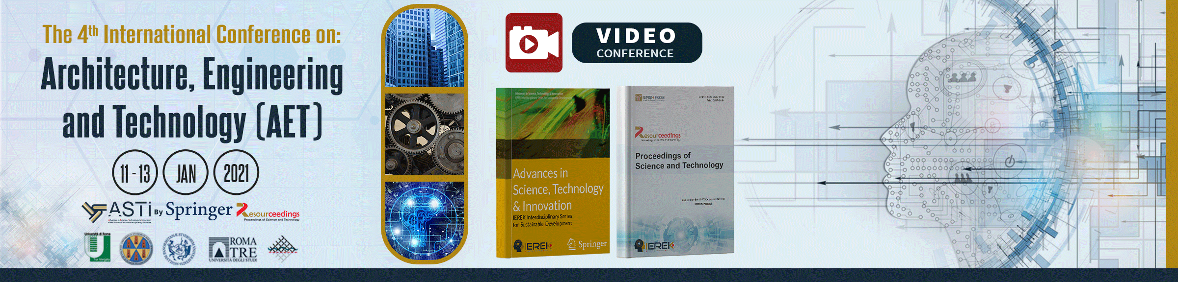 All accepted papers of the international conference "Architecture, Engineering, and Technology (AET) - 4th Edition" after the peer-review process will be either published as chapters in the Book Series “Advances in Science, Technology and Innovation (ASTI)” by Springer OR in The International Journal of Proceedings of Science and Technology (Resourceedings) by IEREK Press.