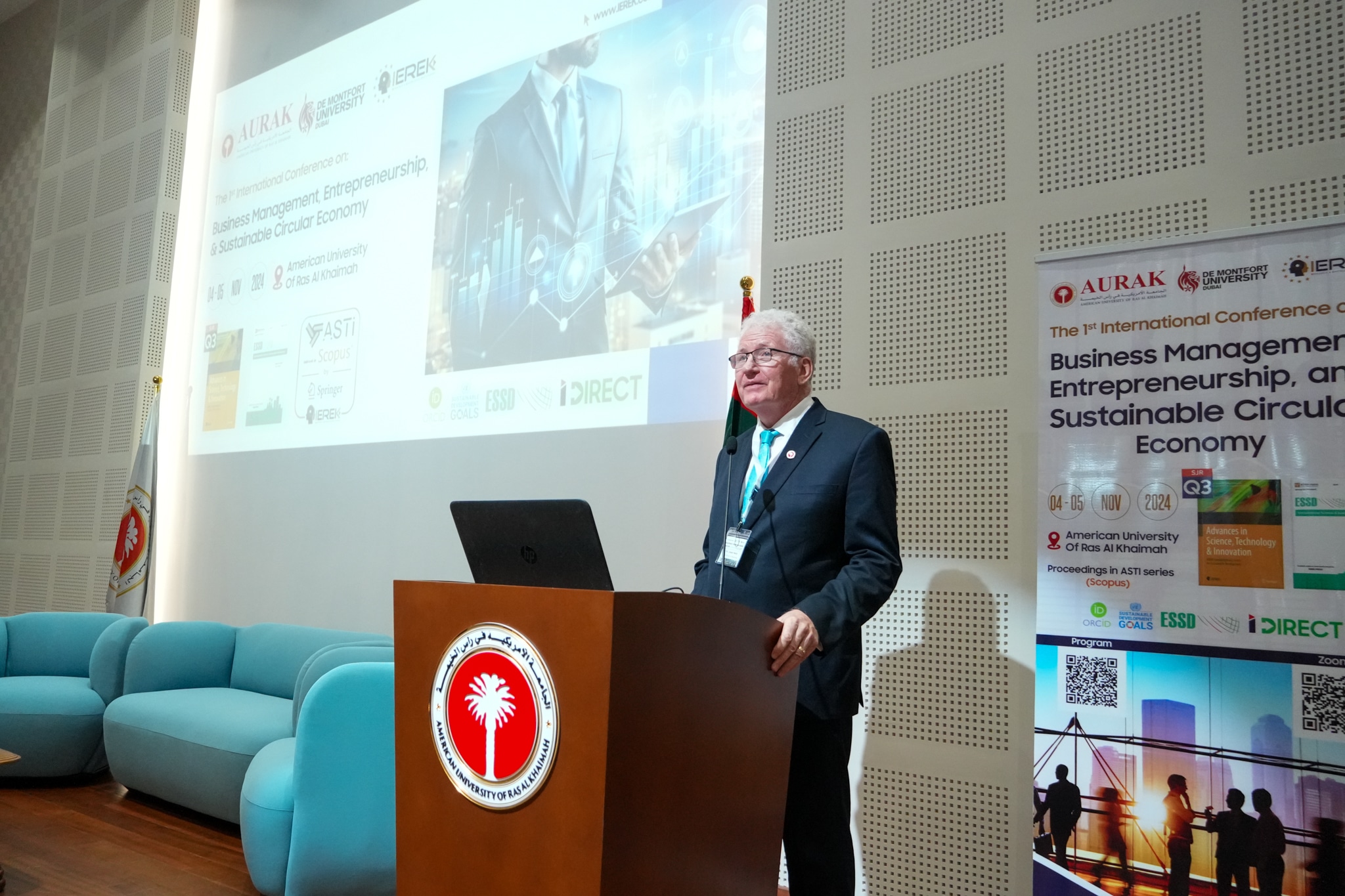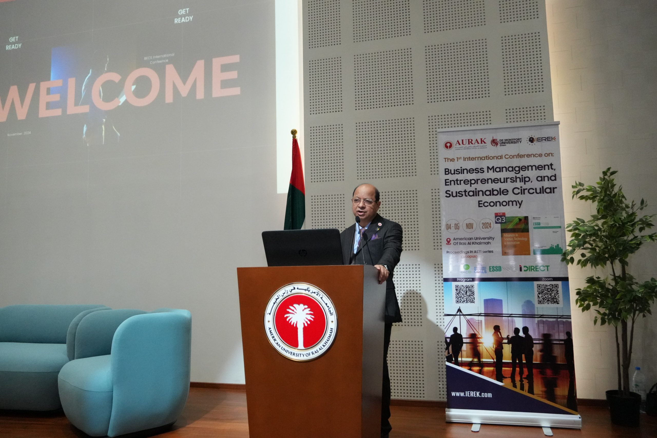 The inaugural International Conference on Business Management, Entrepreneurship, and Sustainable Circular Economy was held from November 4-5, 2024, at the American University of Ras Al Khaimah (AURAK) in the United Arab Emirates. Co-hosted by De Montfort University Dubai, the conference brought together leading academics, researchers, and professionals to discuss innovative approaches to business, entrepreneurship, and sustainability.