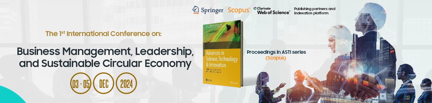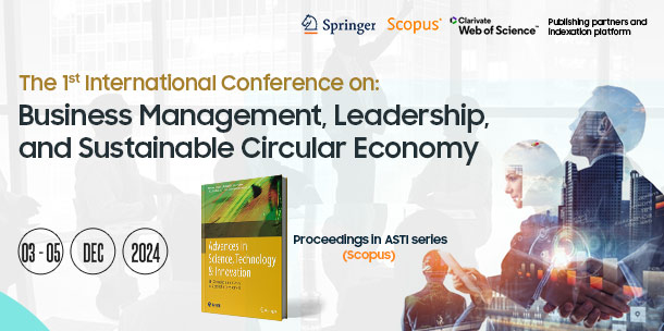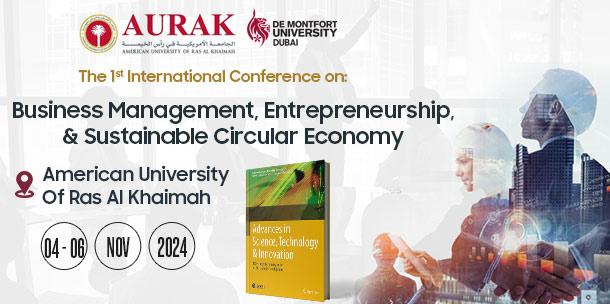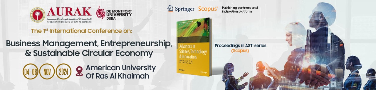 The International Conference on "Business Management, Entrepreneurship, and Sustainable Circular Economy" is a significant event that will take place from November 4th to November 6th, 2024 which will held on American university at Ras AL Khaima, United Arab Emirates. The conference is organized with the valuable support and active participation of Springer Nature, a leading academic publisher. The proceedings of the conference will be indexed in Scopus, a renowned abstract and citation database, further enhancing the visibility and impact of the research presented.