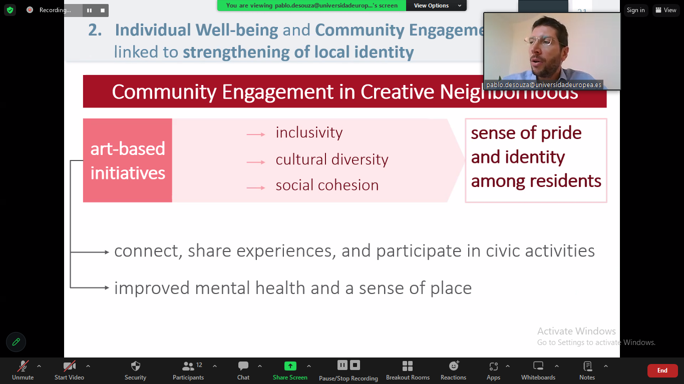 The Second day of the conference started with introducing the fourth Keynote speaker Prof. Pabalo Miguel De Souza Sanchez, Phd Architect and Professor at the School of Architecture of the European University of the Canary Islands whose speech was entitled “Qualifying the Palette of the Urban Ecosystem of Creativity in Shaping Sustainable Communities”