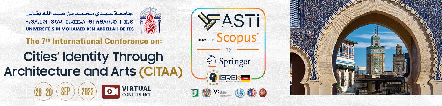 The 7th-Edition of the International Conference “Cities’ Identity Through Architecture & Arts” was held in collaboration with the University Sidi Mohamed Ben Abdullah University – Fes, Morocco. and took place virtually from 26 – 27 September 2023.