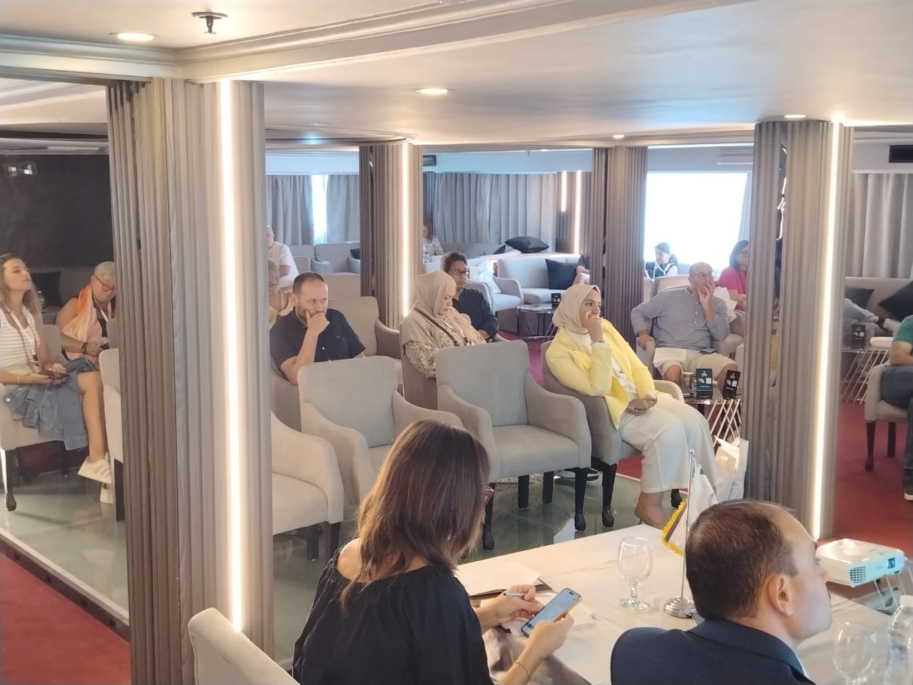 The third day started with a fascinating visit to the Edfu Temple, allowing participants to immerse themselves in the grandeur of Egypt’s ancient civilization. After the temple tour, the cruise continued with a scenic sailing to Luxor, providing a serene backdrop as the conference moved into its physical and online parallel sessions. The physical sessions were moderated by Prof. Elisa Pilia (University of Cagliari, Italy), Dr. Tarek Teba (University of Portsmouth, UK), Prof. Donatella Rita Fiorino (University of Cagliari, Italy), Prof. Manuela Raitano (Sapienza University of Rome, Italy), Prof. Luca Lanini (University of Pisa), and Prof. Hugo Oliveira Martins (University of Maia, Portugal). The online sessions were led by Valentina (University of Cagliari, Italy), Alessia Zampini (University of Bologna, Italy), Francesca Molle and Federica Deri (University of Pisa), and Prof. João Pedro Mendonça (University of Maia, Portugal). The sessions concluded with an interactive discussion and Q&A, followed by closing remarks and the official ceremony. The day concluded in style with a mesmerizing Tanoura and Belly Dance performance, celebrating Egyptian culture and bringing the conference to a memorable close.