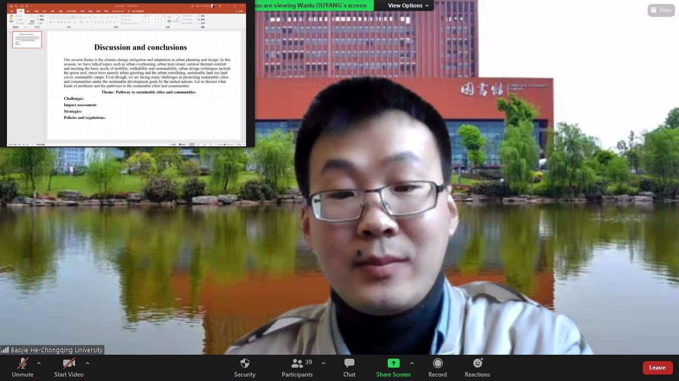 The Second Session discussed eleven presentations before the “Discussion & Conclusions Session” given by the conference chair Research. Prof. Baojie He, School of Architecture and Urban Planning, Chongqing University, China & Green Talents Alumni of Federal Ministry of Education and Research, Germany.