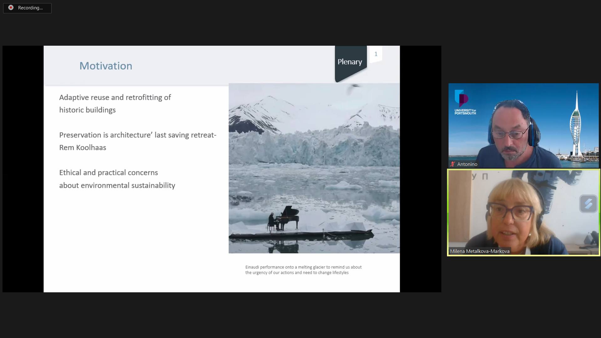 The first session of the day titled “The Concept of Heritage Sites, their Conservation and Sustainable Adaptation” and moderated by Dr. Antonino Di Raimo, From the University of Portsmouth. A diverse set of authors from around the world presented their research online and took questions from both, live, and online attendees. Following the this session, a short lunch break was issued, and the final session of the day was set to begin soon after.