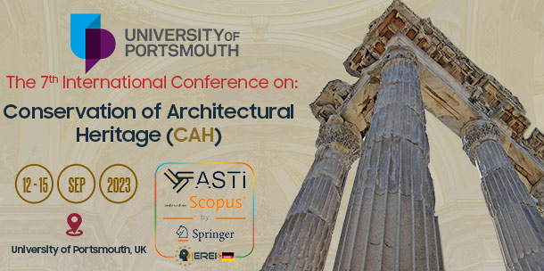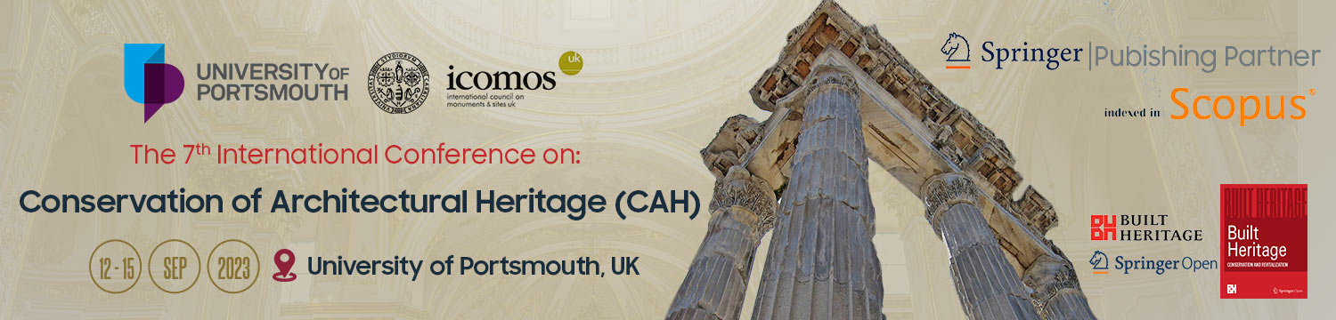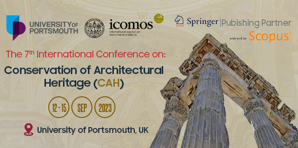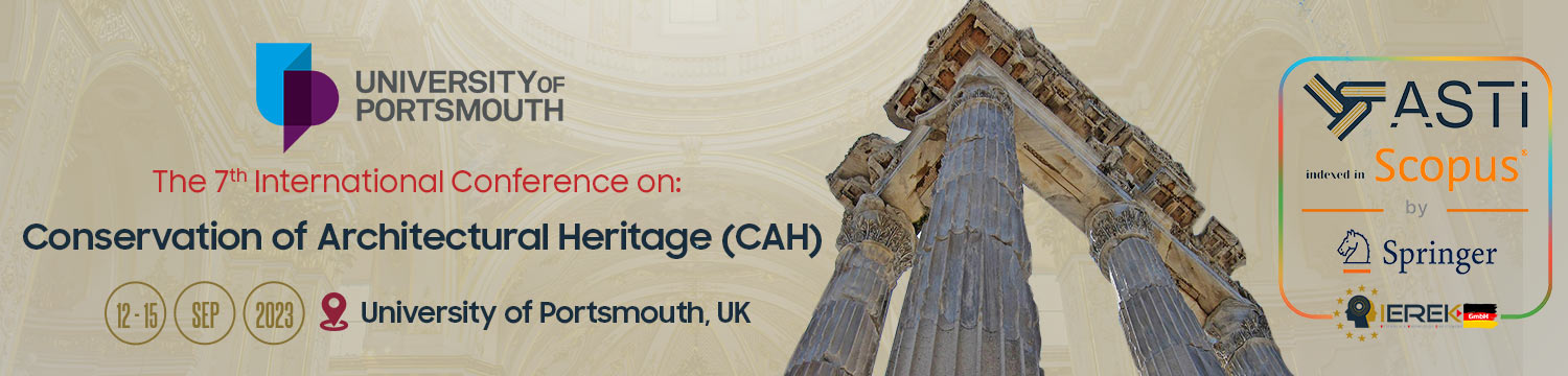The seventh edition of the International Conference on “Conservation of Architectural Heritage: Sustainability (CAH)” was held in collaboration with the University of Portsmouth, UK, and took place physically and virtually from the 12th to the 14th of September, in an effort to include attendees from all corners of the world.