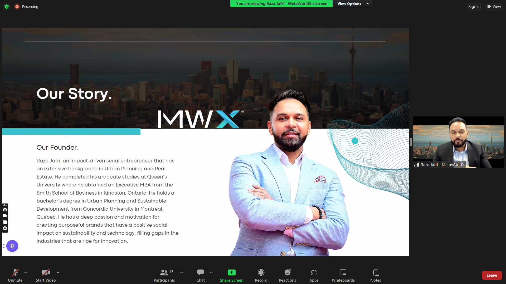 Raza Jafri is a world-renowned speaker, investor and global entrepreneur with experience building organizations from the ground up. Coming from humble beginnings and a desire to keep social impact and human-centric values at the core of all his endeavors. His latest venture builds world class digital twin environments for cleantech and smart city organizations. MetaWorldX was launched at the World Smart City Congress in Barcelona, Spain. Raza is the recipient of the Top 40 Under 40 Sustainability Star Award for 2023.