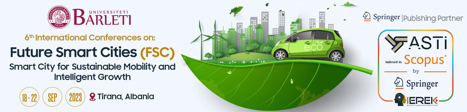 The 6th edition of the International Conference on “Future Smart Cities (FSC)” was held in collaboration with the Barleti University, Albania, and took place virtually on 19 September 2023, to include attendees from all corners of the world.