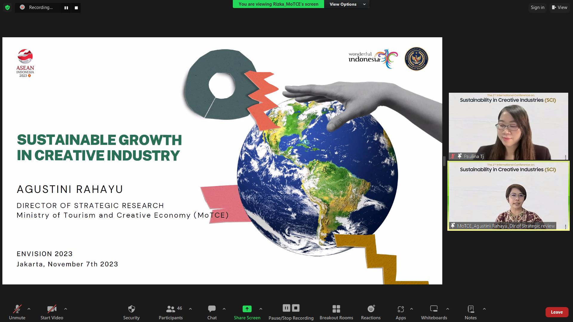 The Opening Ceremony started with online registration and welcoming speeches from the Conference Chair Dr. Astrid Kusumowidagdo, followed by a speech from Ms Agustini Rahayu, Director for Strategic Studies of Indonesia, Ministry of Tourism and Creative Economy.