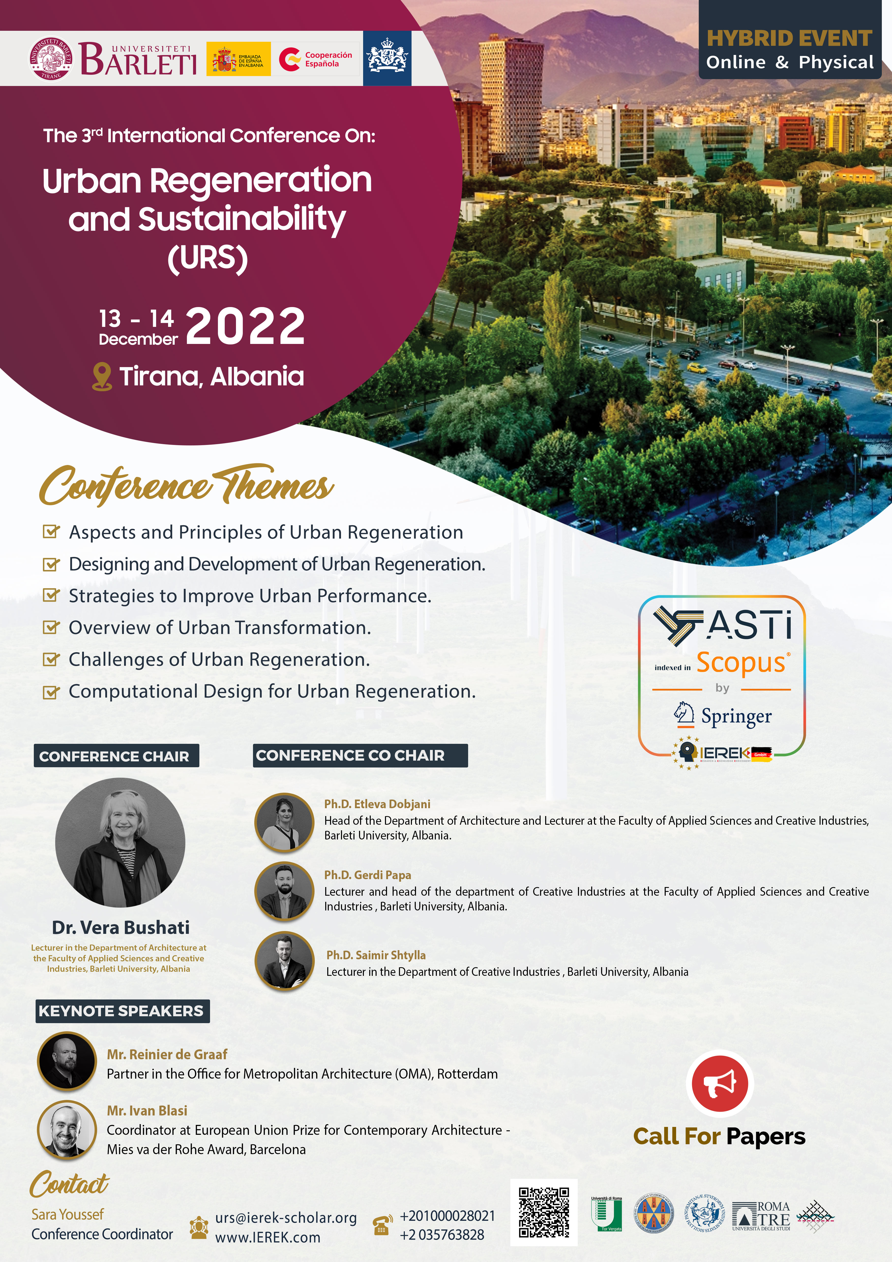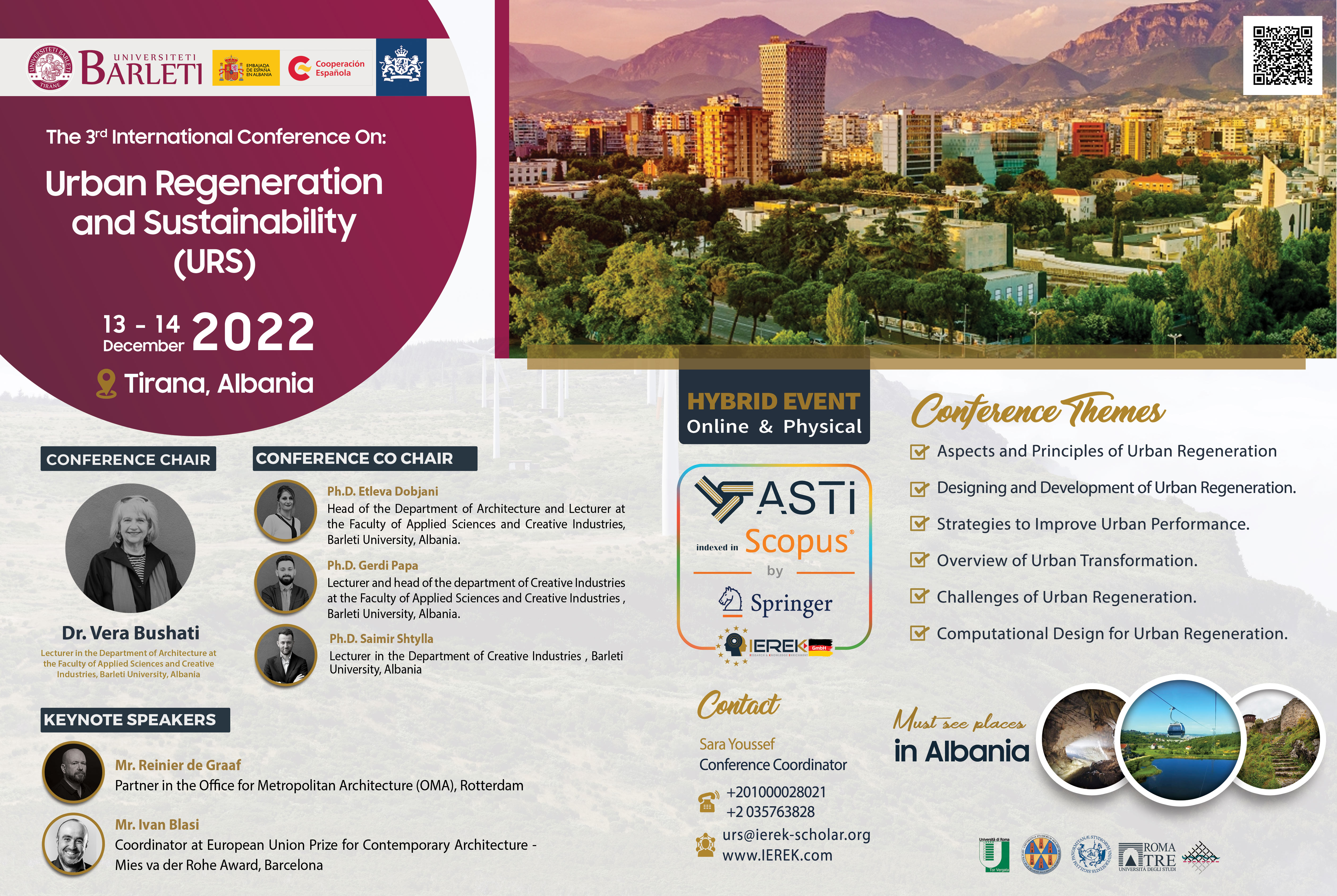 The 3rd edition of the International Conference on Urban Regeneration and Sustainability (URS) will be held in collaboration with Barleti University, Rruga Frang Bardhi, Tirana, Albania.