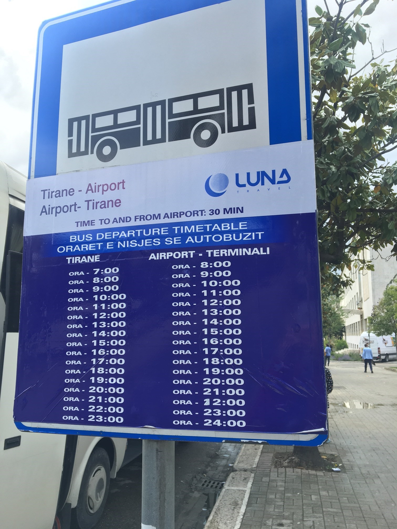 TIA - Tiranë: every one hour starting from 08:00 until 24:00