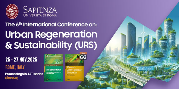 In light of these challenges, the 6th edition of the "Urban Regeneration and Sustainability" (URS) conference functions as a platform for academics, urban planners, architects, policymakers, and industry experts to disseminate knowledge and investigate innovative solutions. Through discussions on sustainable development, adaptive reuse, smart cities, and inclusive urban policies, the conference aims to advance the discourse on urban regeneration and contribute to shaping resilient and thriving urban environments.