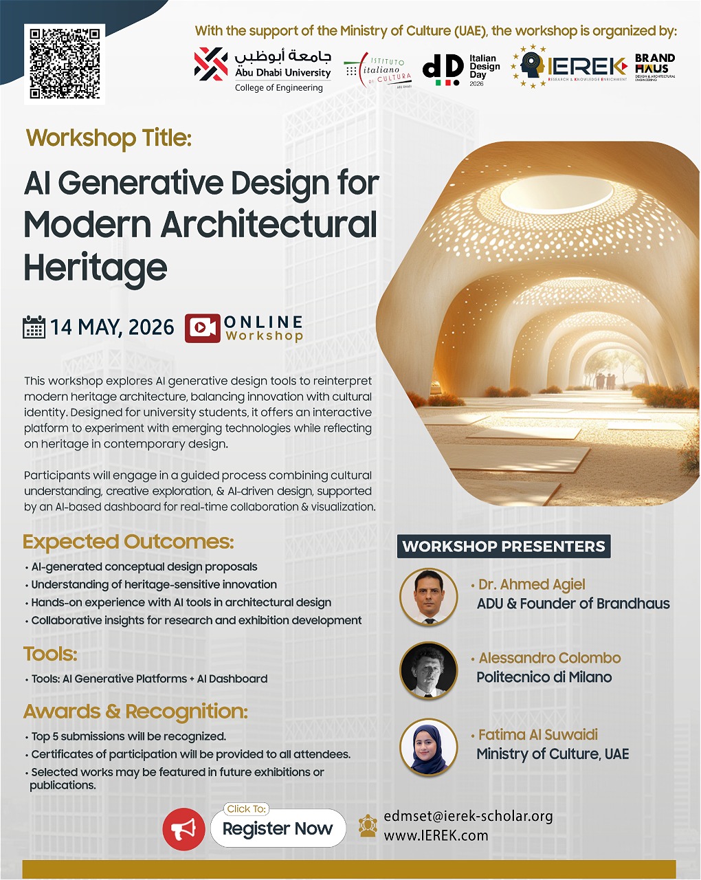 This workshop positions students at the intersection of AI, design innovation, and cultural heritage, empowering them to shape future architecture that is both technologically advanced and culturally grounded.