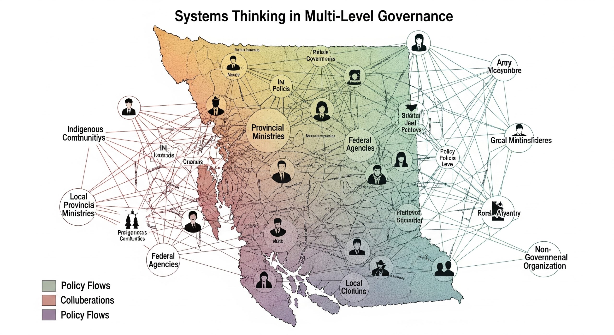 British Columbia is pioneering a systems-level approach, aligning climate targets across municipal, provincial, and national levels. This ‘nested governance’ model reframes emissions not as isolated outputs, but as embedded within interdependent policy ecosystems. This systems perspective provides one possibility for more in-depth exploration in CCES panels.
