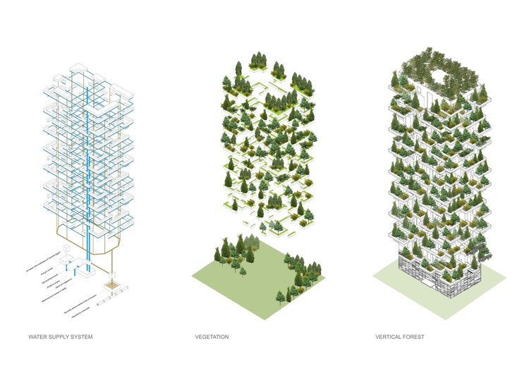 The design concept is both poetic and practical. The extensive vegetation performs multiple ecological functions: