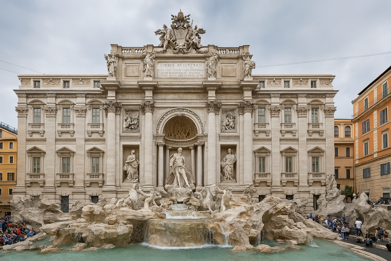 The Trevi Fountain, Rome: A Baroque masterpiece of travertine architecture and ancient hydrological engineering. Its construction and water supply from the Aqua Virgo aqueduct reveal deep geological knowledge, making it a living model of Geo-Urbanism.