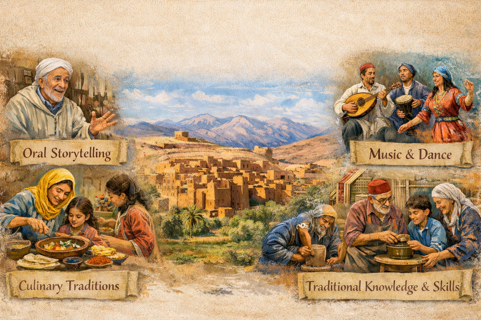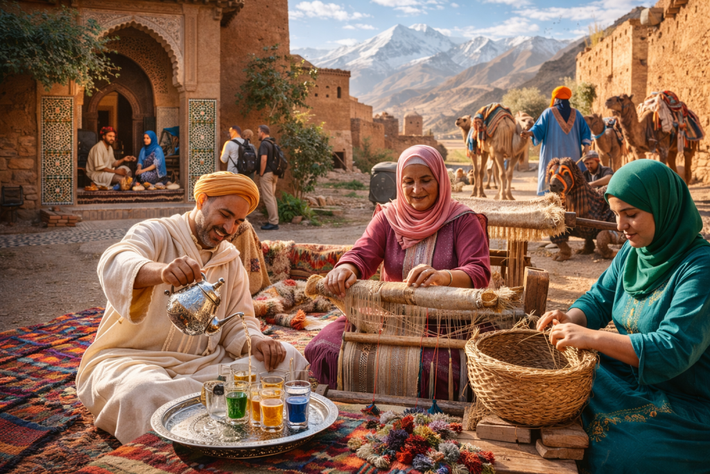 Traditional heritage preservation often focuses on buildings. Community tourism in Morocco goes further by preserving intangible cultural heritage, including: